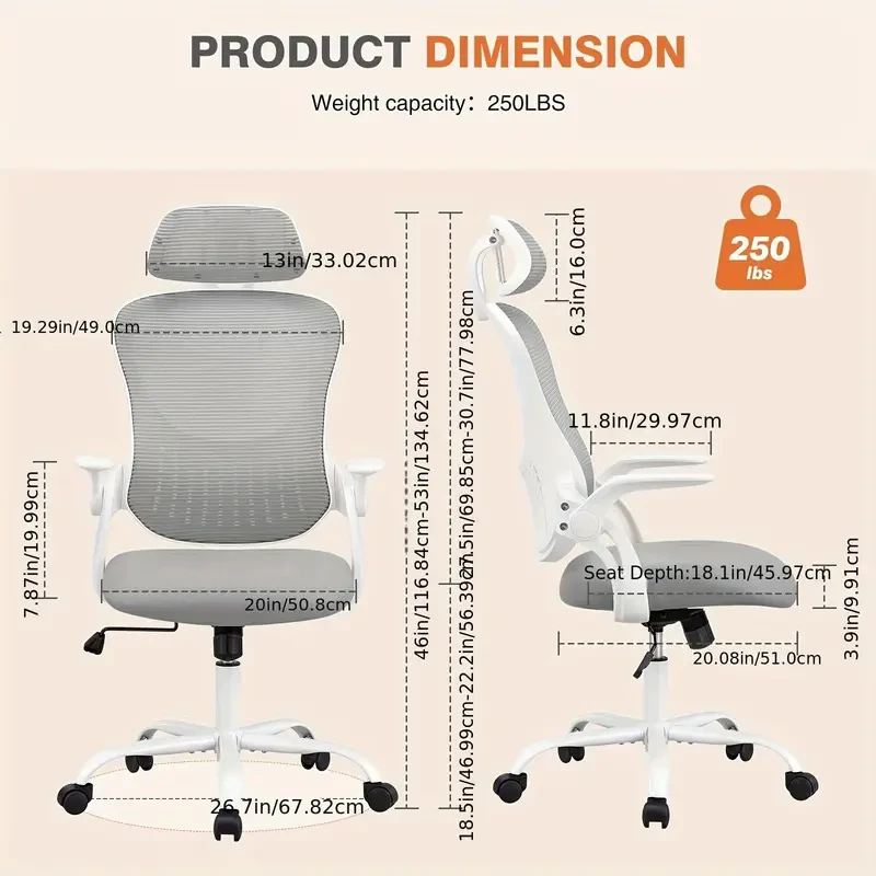 144° Tilt Ergonomic High-Back Computer Chair - Adjustable Headrest, Lumbar Support, Flip-up Arms, Breathable Mesh, Smooth Wheels, Durable Metal Frame - OLIXIS Comfy Swivel Office & Gaming Chair for Ho