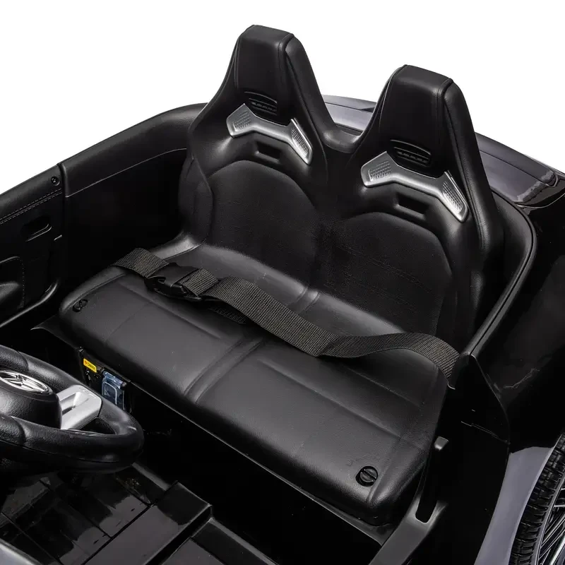 【FUNCTION】 Smooth start for safety More entertainment options: Music, USB, Radio, Wireless Connection LED lights Four-Wheel suspension, makes driving more comfortable Hidden training wheels for easy transport when battery is low Spacious 2 seats with seat belt Manual/ Parent Remote Contro