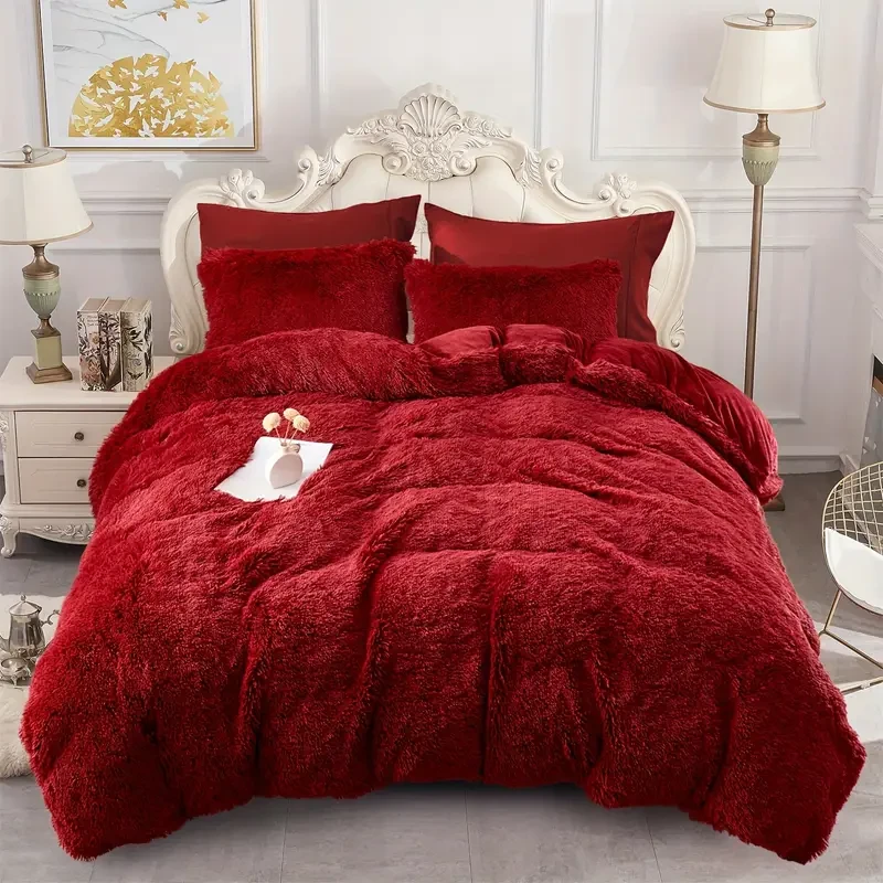 Transform your bed into a haven of cozy comfort with the 5-Piece Plush Shaggy Duvet Cover Set. This luxurious bedding set is crafted with ultra-soft faux fur that feels inviting and warm, perfect for a relaxing night's sleep.