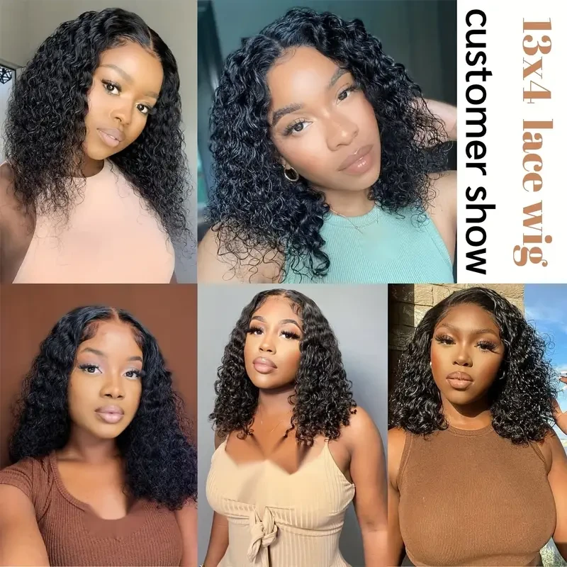 Curly Bob Wig Human Hair 13x4 HD Short Kinky Curly Lace Front Bob Wigs for Women Human Hair Pre Plucked Natural Hairline with Baby Hair 180% Density Natural Black Color