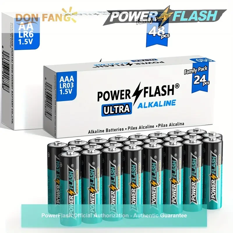 Ensure your devices are always powered with the PowerFlash Alkaline Long-Lasting Batteries Combo Pack. This set includes 24 AAA and 48 AA batteries, providing reliable and long-lasting energy for all your household and work needs.