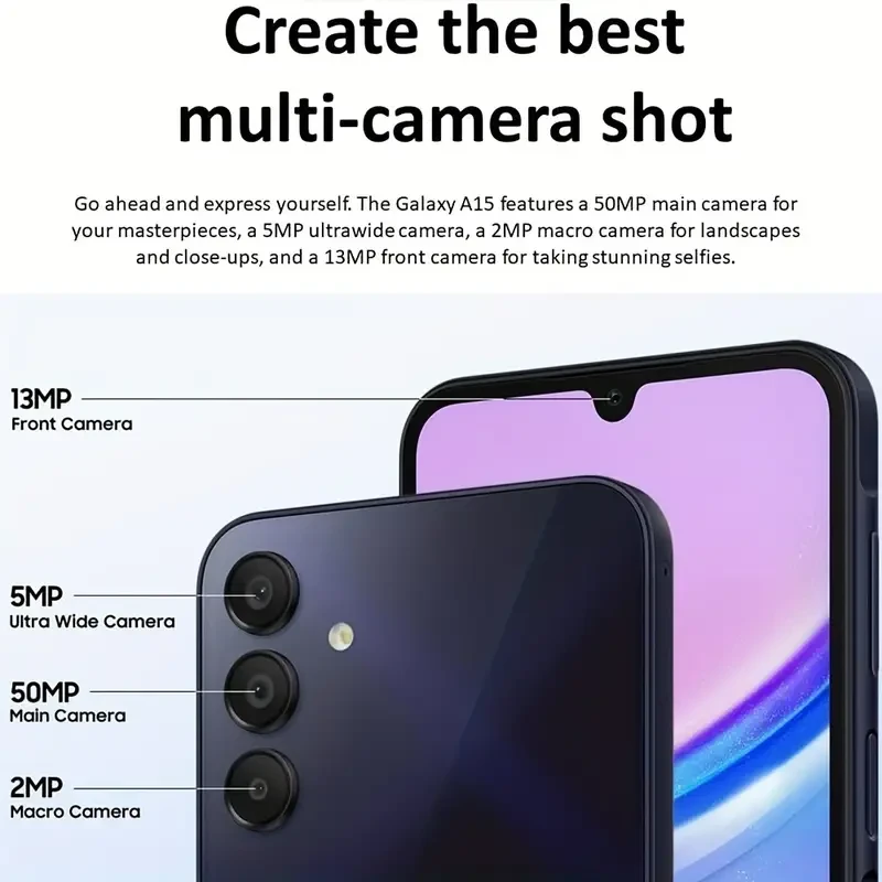 Samsung Galaxy A15 LTE, 6 RAM 128 ROM, Dual Sim Android Smartphone, Unlocked, Yellow