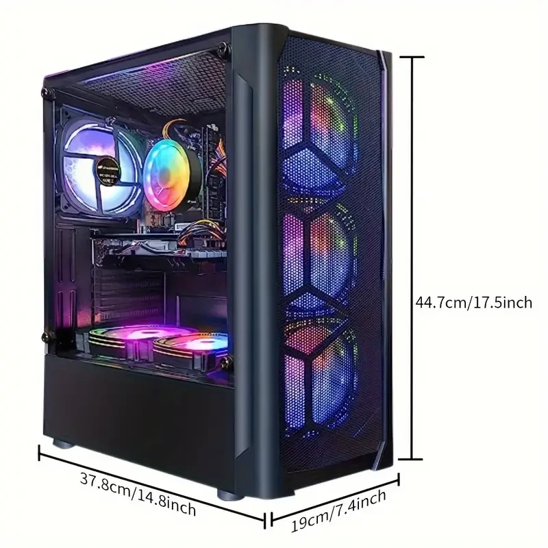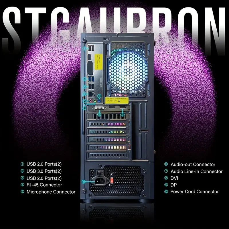 STGAubron Gaming PC Diamond Black, Intel Core I7 Up To 3.8G, Radeon RX580 8G, 16G, 1TB SSD, WiFi, Wireless 5.0, RGB Fan X 6, RGB Keybaord&Mouse&Mouse Pad, RGB Wireless Sound Bar, Mic, W10H64