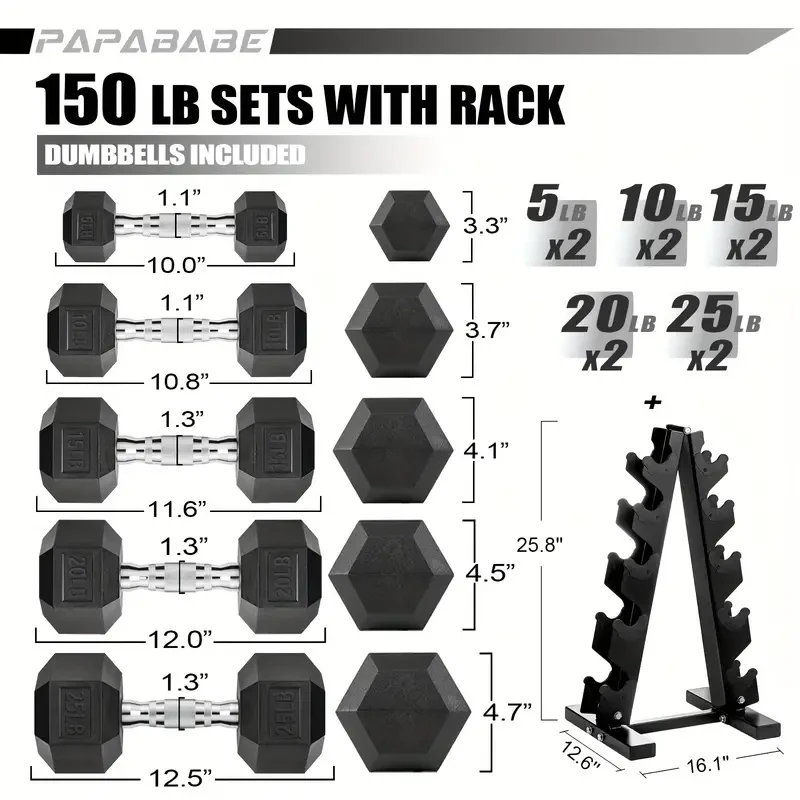 The 150lbs Heavy-Duty Hex Dumbbells Set is an excellent addition to any home gym, offering a comprehensive solution for strength training and body shaping. Here’s a detailed overview: