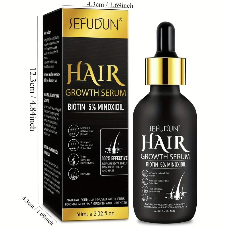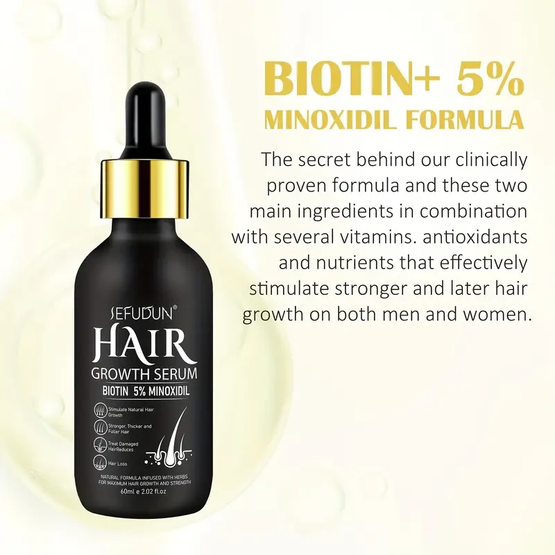2 Counts SEFUDUN Hair Growth Elixir - 5% Minoxidil + Biotin Formula for Thicker, Fuller Hair - Unisex Hair Loss Treatment and Scalp Care for Men and Women with Normal Hair Type