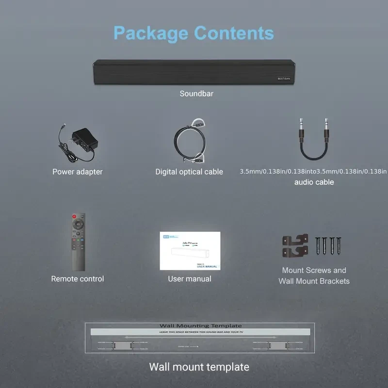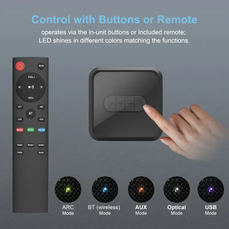 The 32-Inch 100W HD-ARC Sound Bar System is designed to deliver an immersive and high-quality audio experience. With its built-in subwoofer, it provides deep bass that enhances your movies, music, and games. The three audio modes allow you to adjust the sound based on the type of content, while the bass adjustment feature lets you customize the sound experience to your preferences. The wall-mountable design offers a sleek and space-saving installation, and Bluetooth 5.0 connectivity ensures smooth and stable wireless streaming. Additionally, the Sub Out port allows you to connect an extra subwoofer for even more powerful bass.