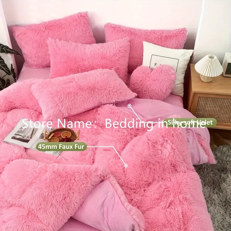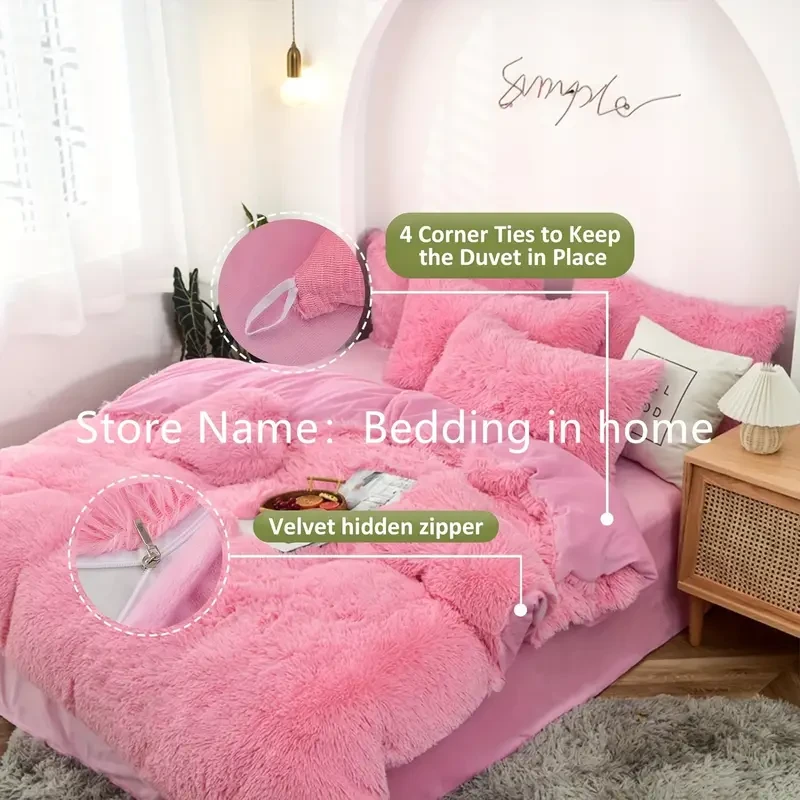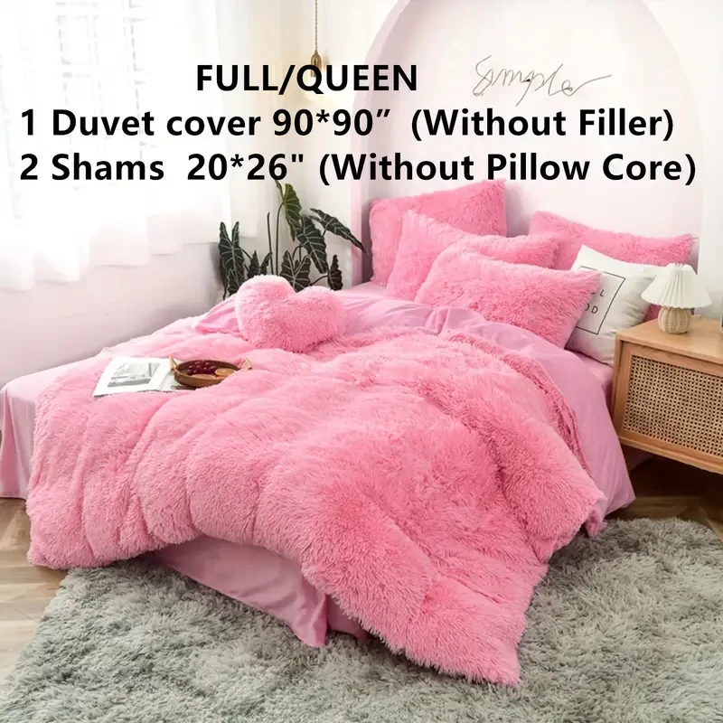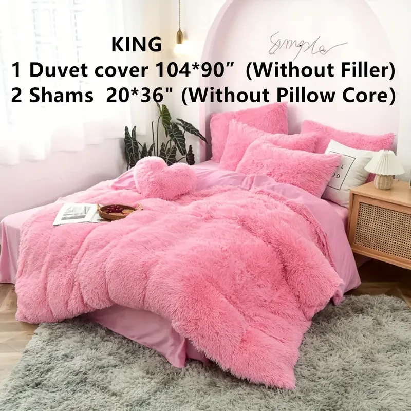 Indulge in ultimate comfort and luxurious style with this 3-piece faux fur duvet cover set! This bedding set is perfect for anyone who wants to add a touch of cozy elegance to their bedroom.
