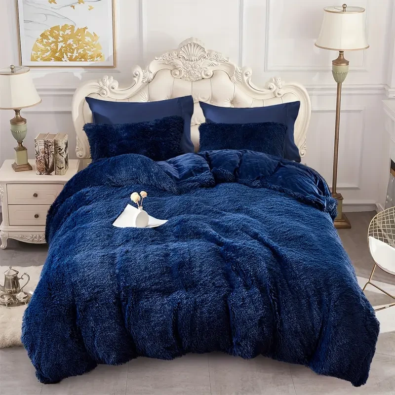 Transform your bed into a haven of cozy comfort with the 5-Piece Plush Shaggy Duvet Cover Set. This luxurious bedding set is crafted with ultra-soft faux fur that feels inviting and warm, perfect for a relaxing night's sleep.