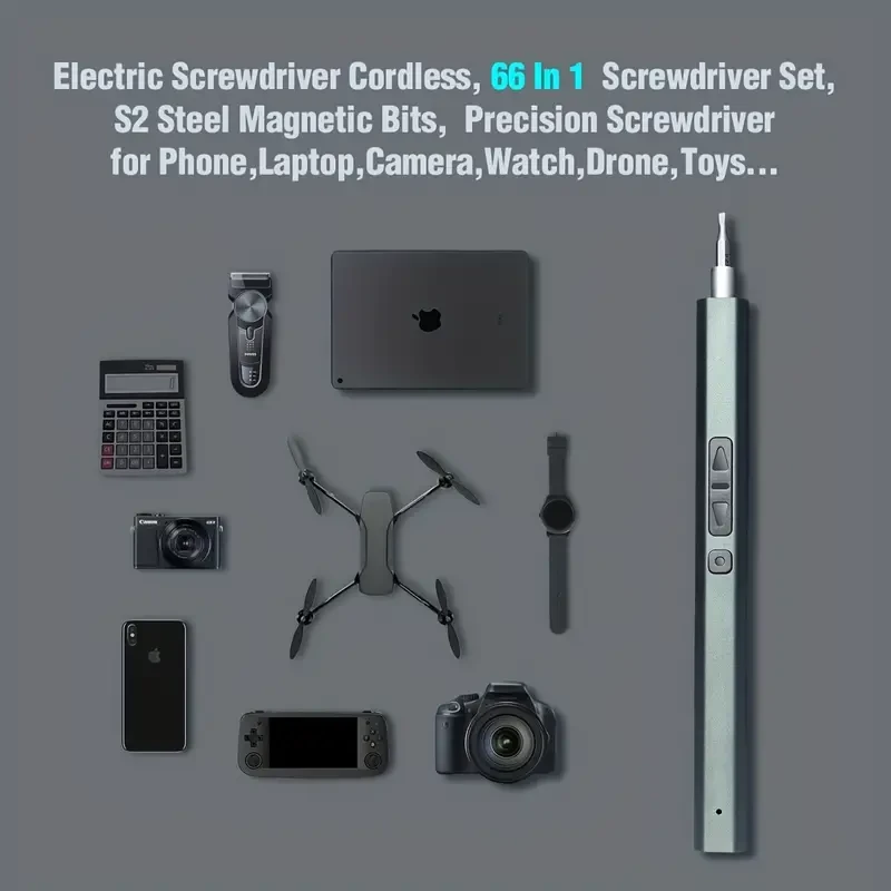 66-in-1 Wireless Portable Electric Precision Magnetic Precision Drill LED Large Capacity Battery Screwdriver Set, Multiple Torques, Suitable for Cameras, Computers, Mobile Phones, Game Consoles, Watch