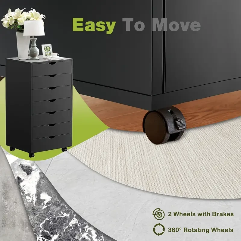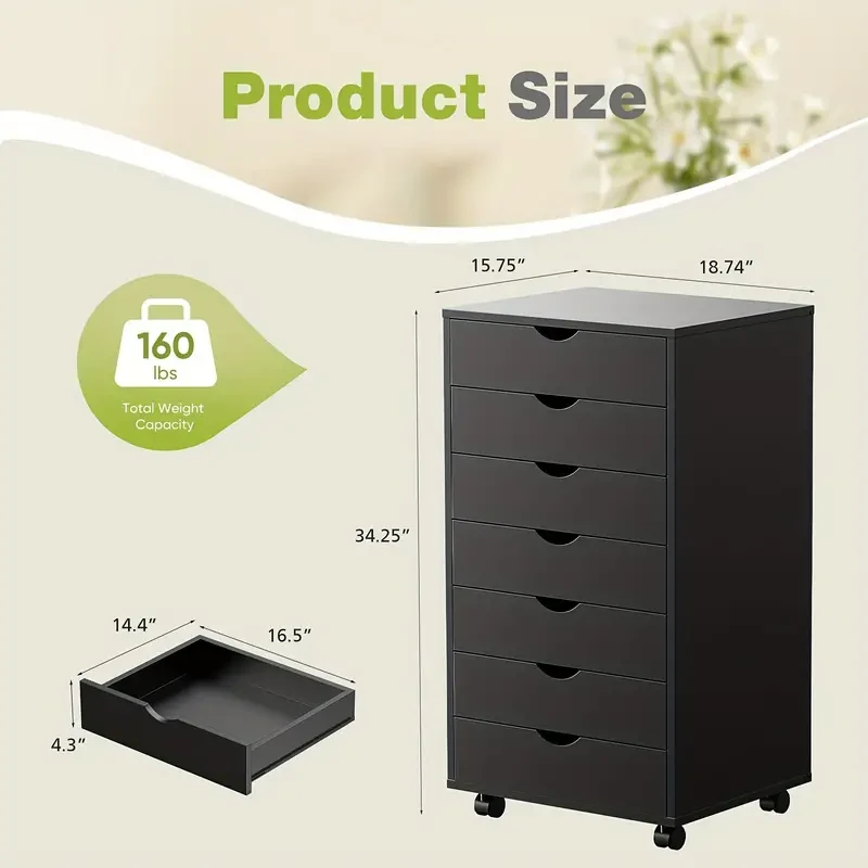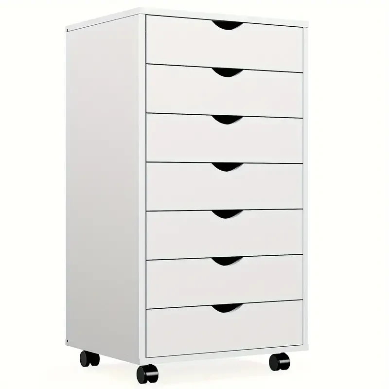 Organize your space efficiently with the 7 Drawer Chest, Wood Storage Dresser File Cabinet Organizer. This versatile piece is perfect for bedrooms, home offices, and more, offering ample storage with a sleek design and convenient mobility.