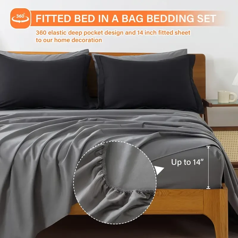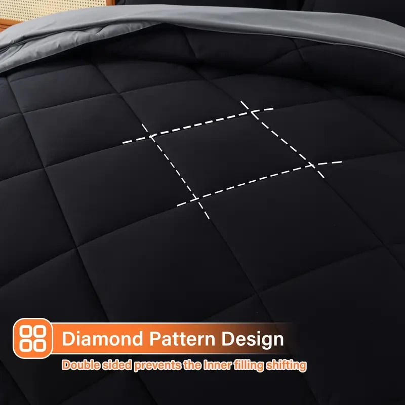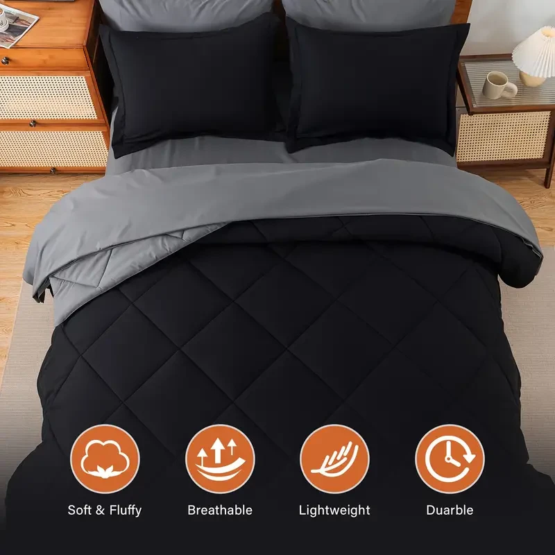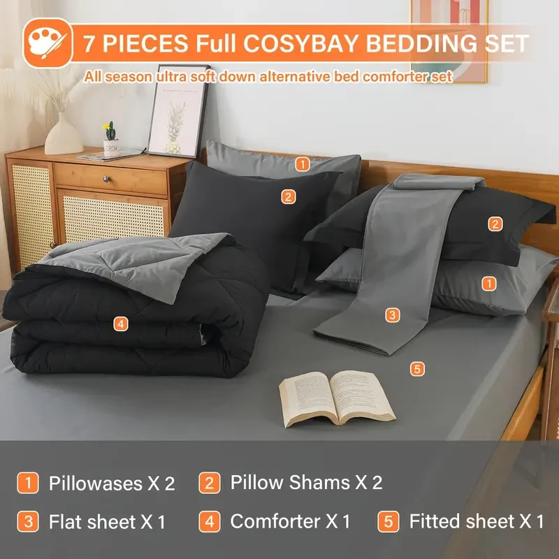 7-Piece Cosybay Black and Grey Deluxe Down Alternative Bedding Set - Soft, Warm, and Breathable Comforter, Pillow Shams, Flat Sheet, Fitted Sheet, and Pillowcase for a Cozy Nights Sleep - Universal Fi