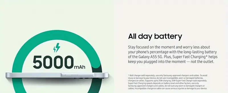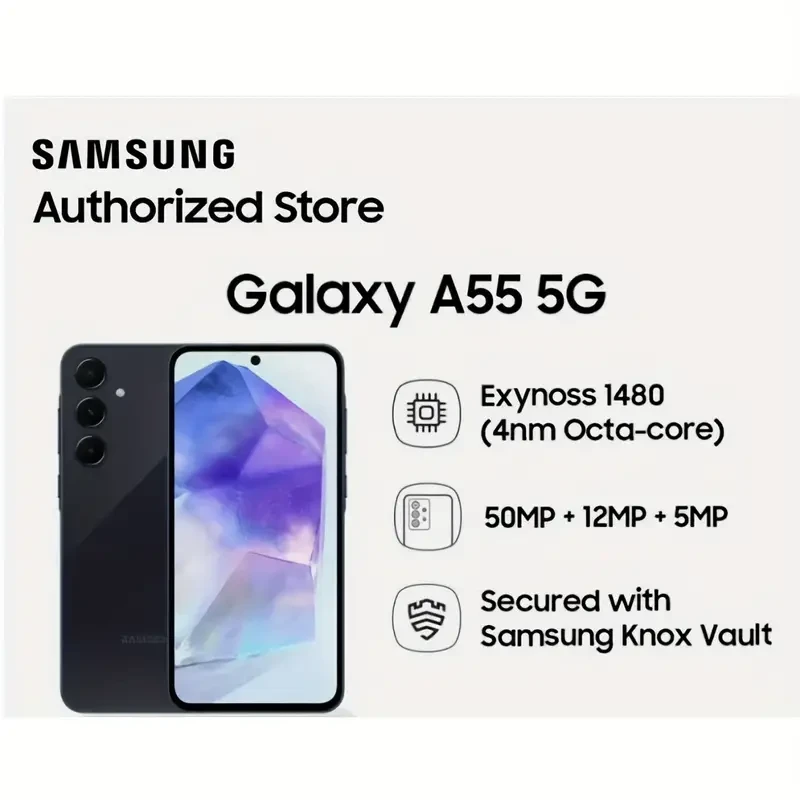 The Samsung Galaxy A55 5G is a mid-range smartphone packed with robust features and modern technology. Here's a comprehensive description: