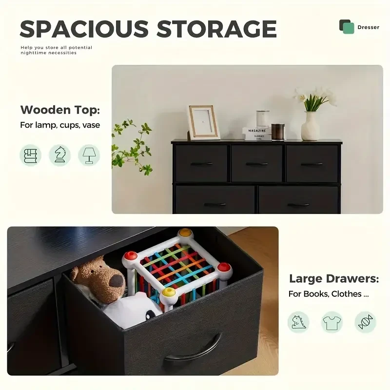 Description: Organize your space with the versatile and stylish Bedroom Dresser With 7 Storage Drawers. This fabric storage tower is perfect for various settings, including restaurants, hotel rooms, and closets. Its sturdy construction and ample storage make it an ideal choice for keeping your essentials neatly arranged.