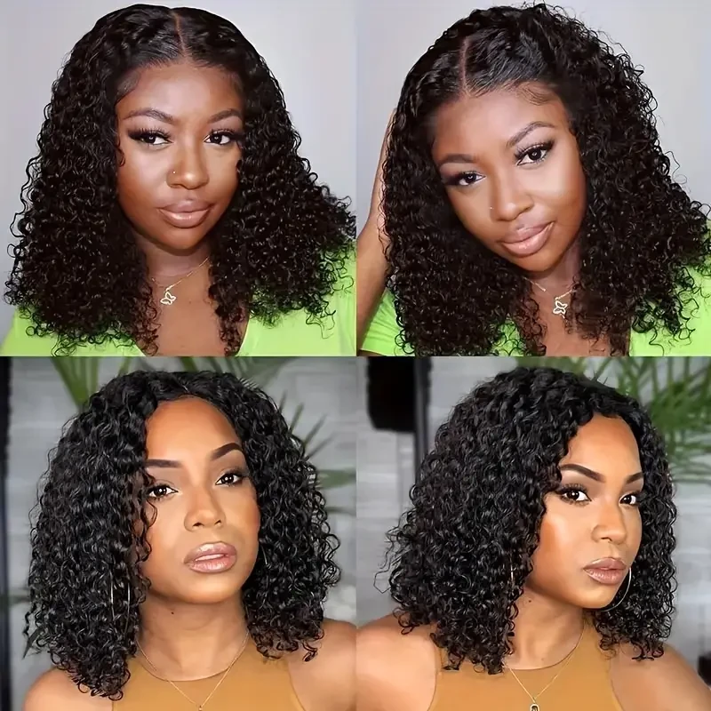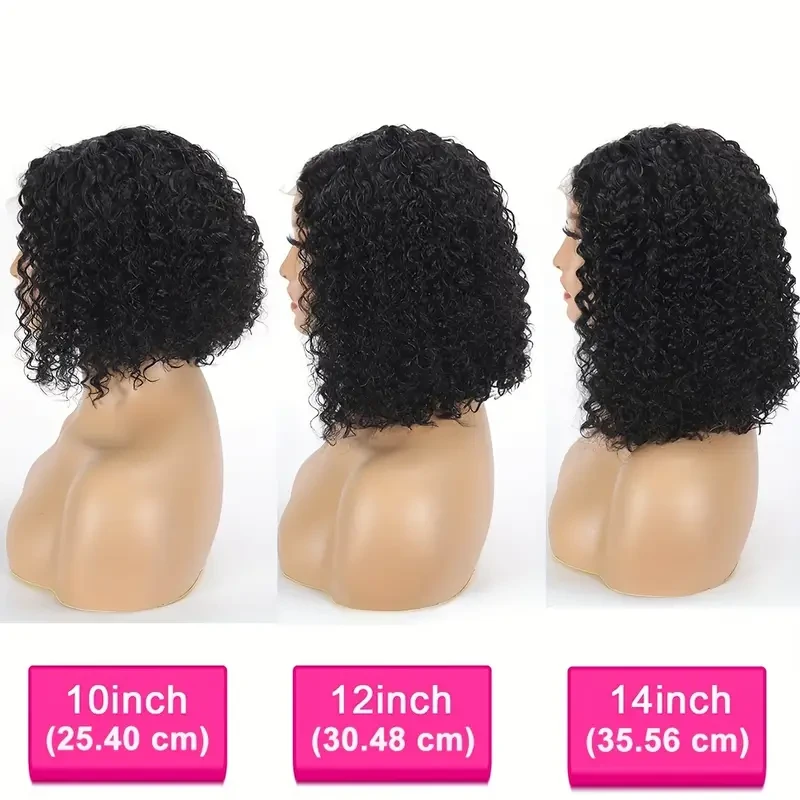 Curly Bob Wig Human Hair 13x4 HD Short Kinky Curly Lace Front Bob Wigs for Women Human Hair Pre Plucked Natural Hairline with Baby Hair 180% Density Natural Black Color