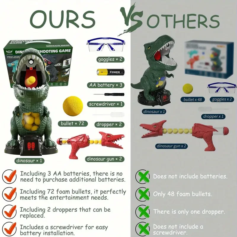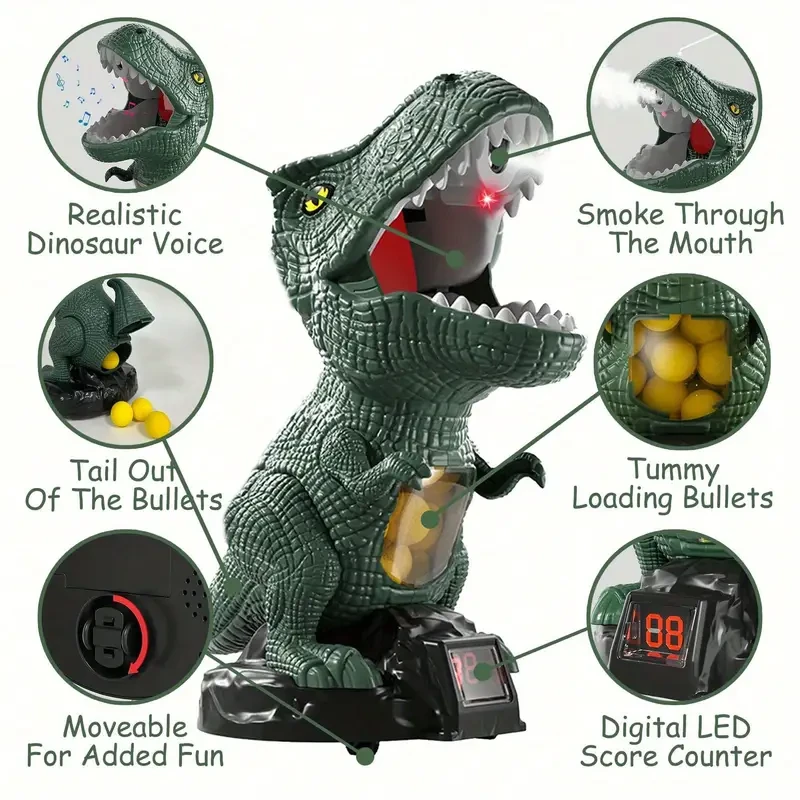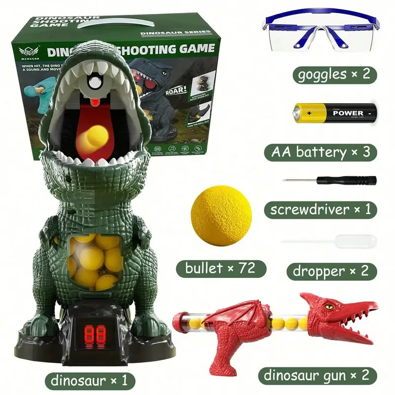 Dinosaur Shooting Toys, Movable Dinosaur Shooting Game Toys, 2 Air Pump Guns And 72 Foam Bullets, Hand-Eye Coordination Practice Toys Gifts, Boys And Girls Halloween Christmas Gift
