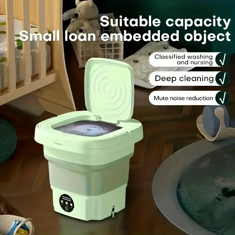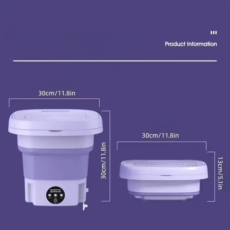 The Folding Washing Machine is an automatic, portable solution designed specifically for washing small items like underwear and socks. This mini washing machine is perfect for home use, travel, and camping. It features a compact, foldable design that makes it easy to store and transport. Despite its small size, it offers efficient cleaning with minimal water and energy consumption.