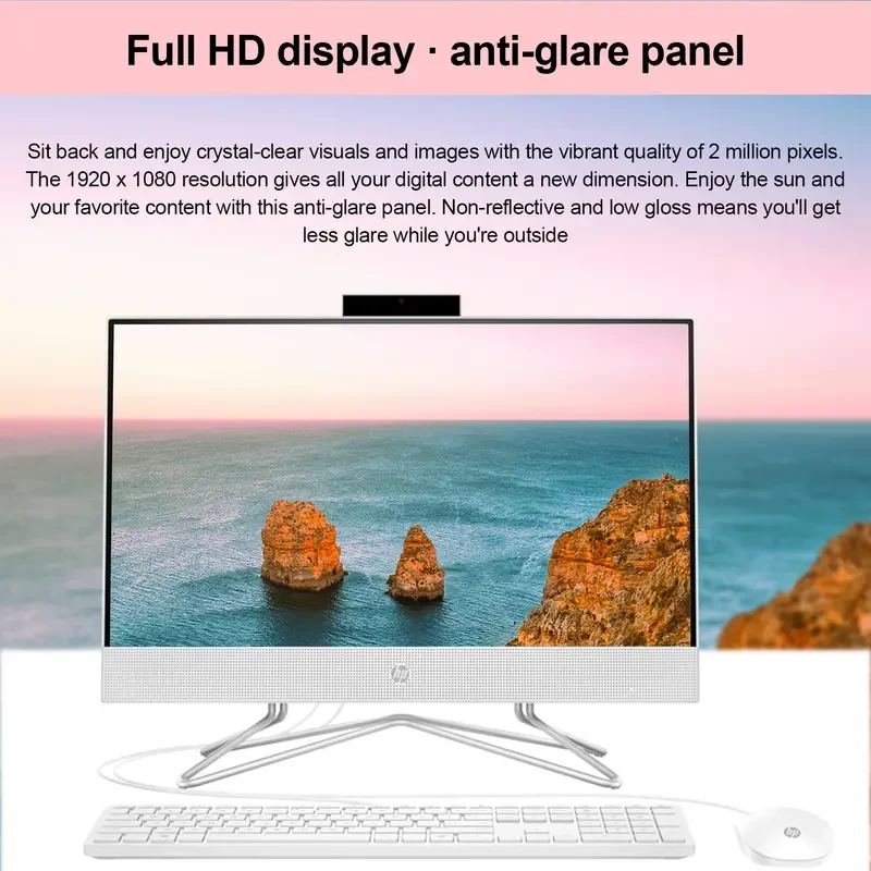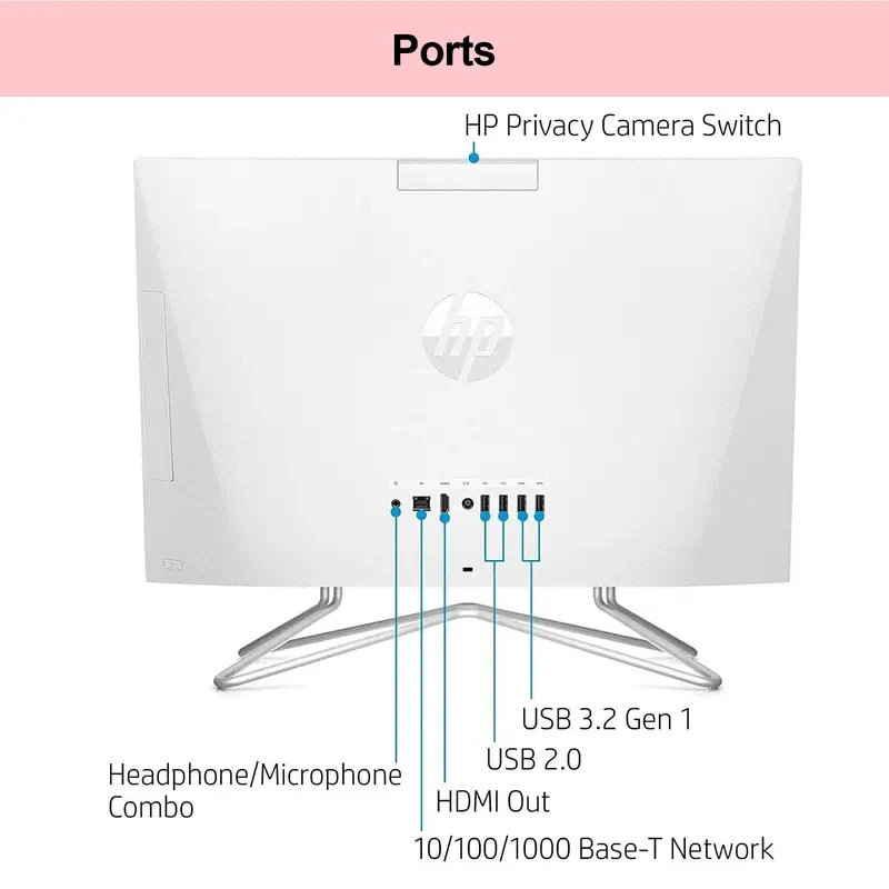 Key Features and Benefits: CPU: Intel Celeron J4025 processor (2 Cores, 2 Threads, 4MB Cache, Base 2.0GHz up to 2.4GHz Max Turbo Frequency) Memory: 32GB DDR4 RAM Hard Drive: 1TB PCIe NVMe M.2 Solid State Drive Operating System: Windows 11 Home Display: 21.5" diagonal FHD VA ZBD anti-glare WLED-backlit three-sided micro-edge display, 250 nits, 72% NTSC (1920 x 1080) Touchscreen: No Graphics: Intel UHD Graphics Ports: 2 x SuperSpeed USB Type-A; 2 x USB 2.0 Type-A; 1 x headphone/microphone combo; 1 x RJ-45; 1 x SD card reader Media Drive: Yes Optical Drive: No Wireless Connectivity: Realtek Wi-Fi Keyboard/Mouse: HP USB White wired keyboard and mouse combo Power Supply: 90W Smart AC power adapter Dimensions: 19.3'' x 14.99'' x 8.05'' Weight: 12.56 Pounds Color: White