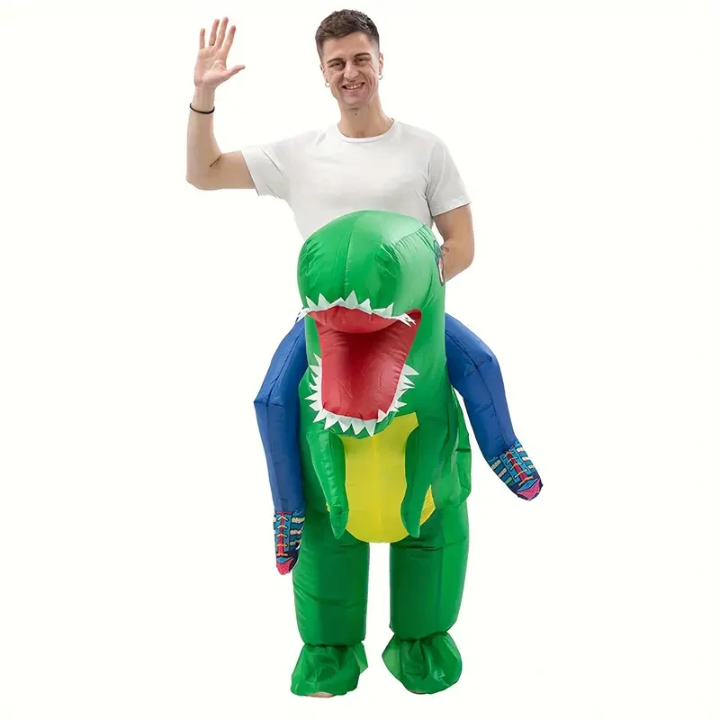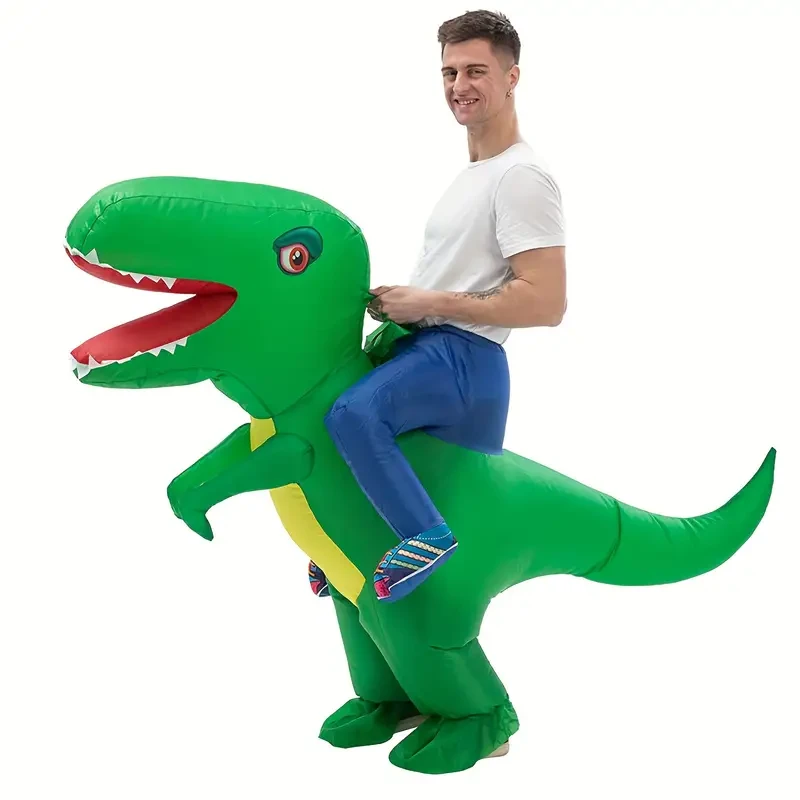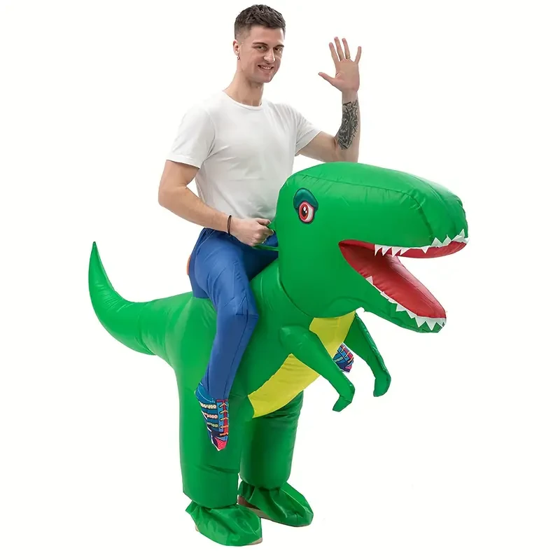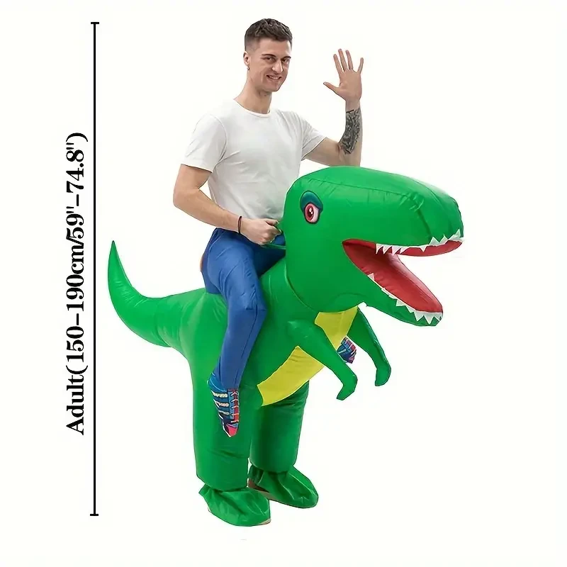 The Inflatable Dinosaur Costume for Adults is a hilarious and eye-catching outfit perfect for Halloween parties, cosplay events, and themed gatherings. This full-body costume is designed to look like you’re riding a dinosaur, complete with a built-in fan to keep it inflated and comfortable to wear. The lightweight material ensures ease of movement, making it ideal for both men and women.
