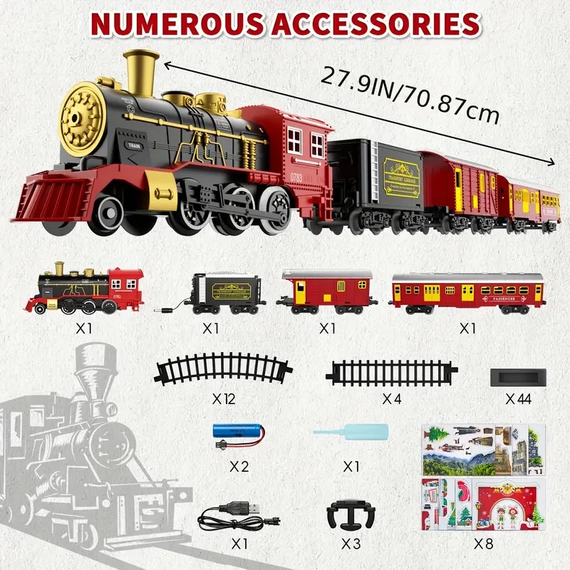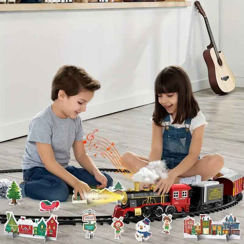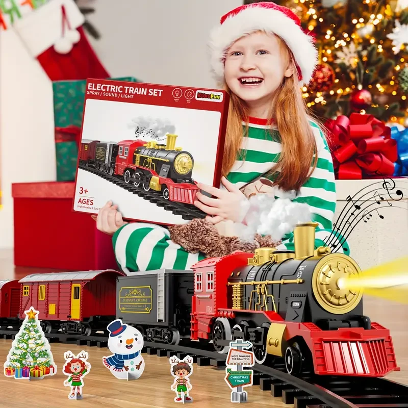 A fantastic Christmas train set for children. This toy train set comes in a beautifully designed gift box, making it an ideal gift for boys aged 2-8 for birthdays, Christmas, or other holiday celebrations. Not only is this toddler toy train set perfect for play, but it can also serve as a lovely Christmas decoration. Place the train track around the Christmas tree, and when the holiday season arrives, start the train and enjoy a magical Christmas with the family.