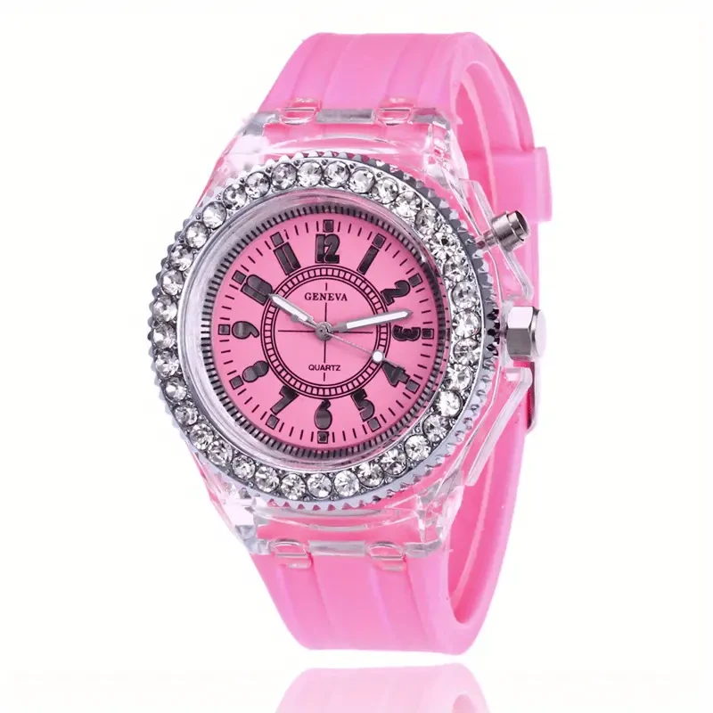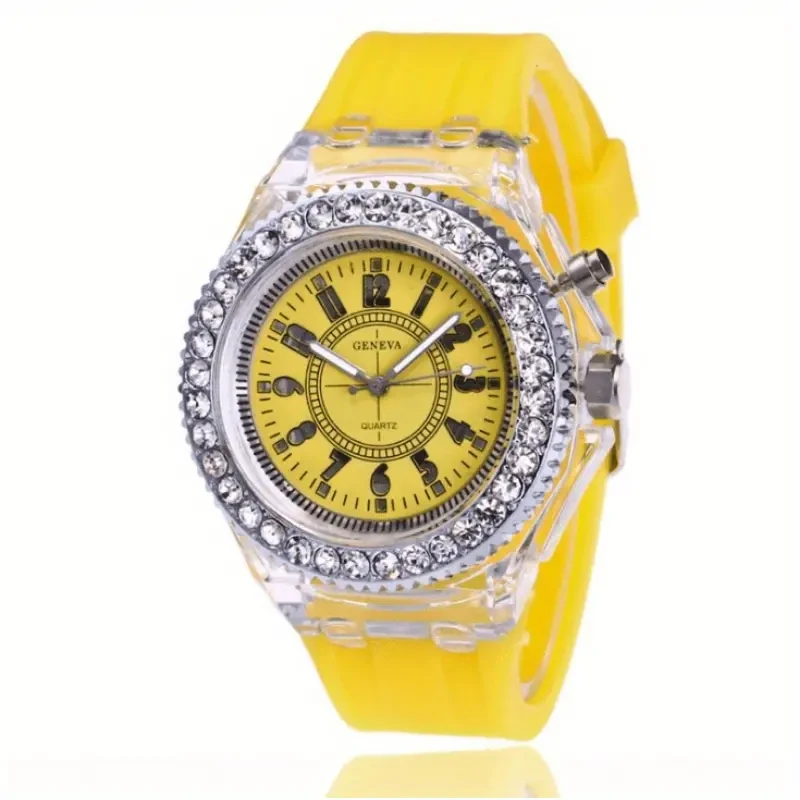 Luminous Personality Rhinestone Led Fashion Trend Male and Female Student Couple Jelly Quartz Watch Inteligente