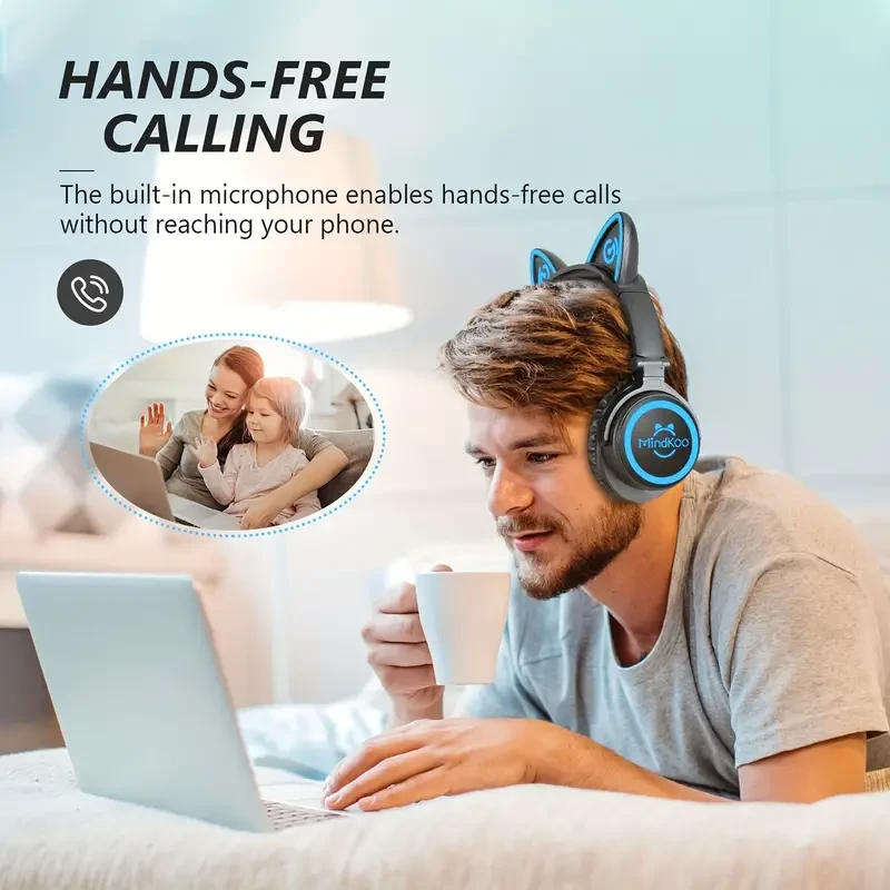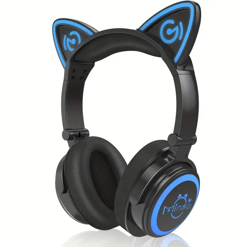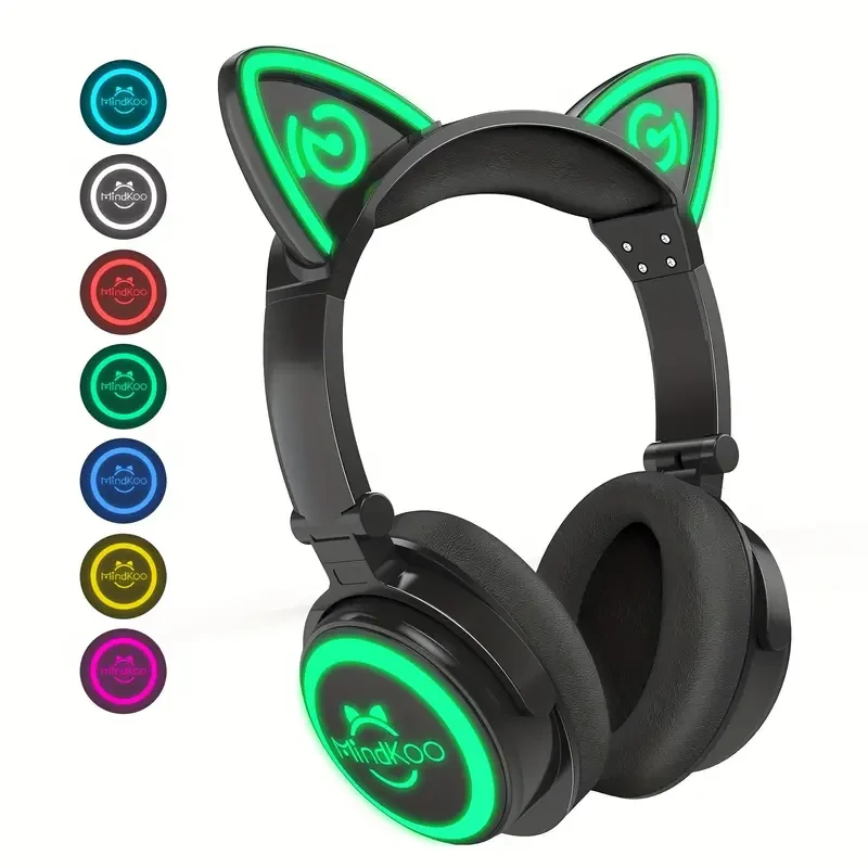 • Cat Ear Design: These headphones feature a cute cat ear design with 7-color LED lights that can flash and glow, adding a playful touch.