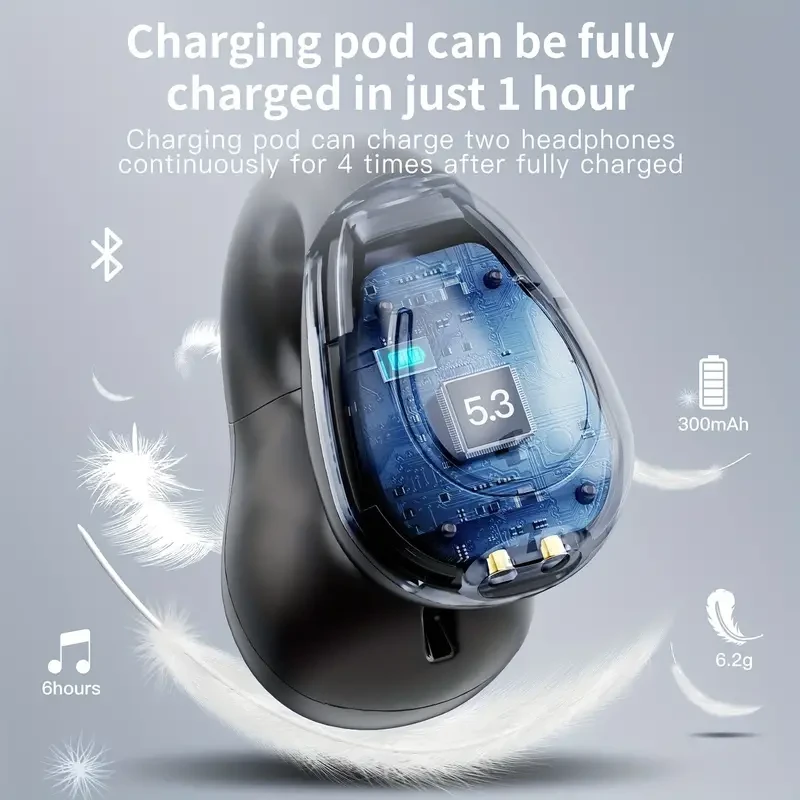 Design: These earbuds feature an open-ear clip design, which means they rest gently on your ears without going into the ear canal. This design helps you stay aware of your surroundings while enjoying your music.