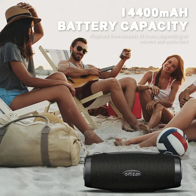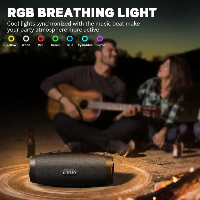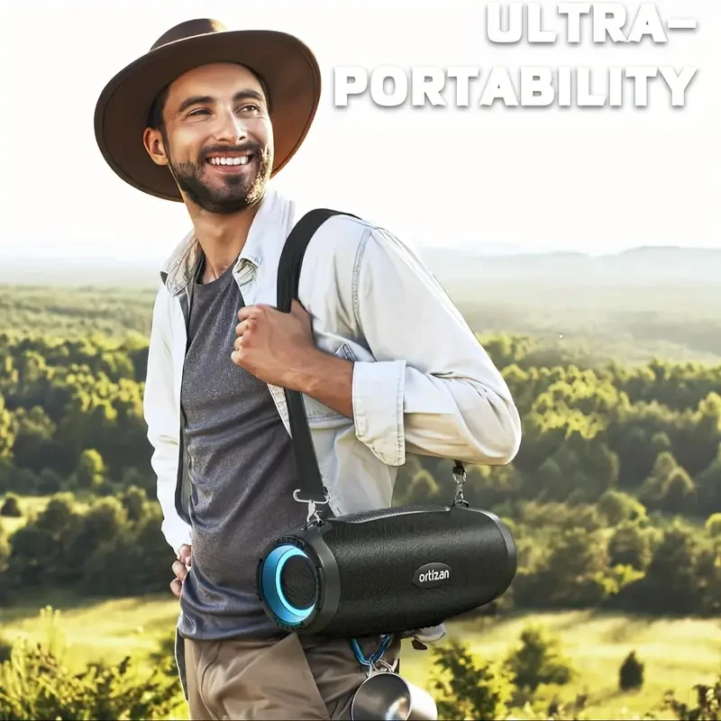 Elevate your outdoor parties and camping trips with the Ortizan 120W Wireless Speaker. This powerful and portable boombox delivers exceptional sound quality and deep bass, making it the perfect companion for any event. With a 12-hour playtime, built-in power bank, and vibrant LED lights, this speaker ensures your music never stops.