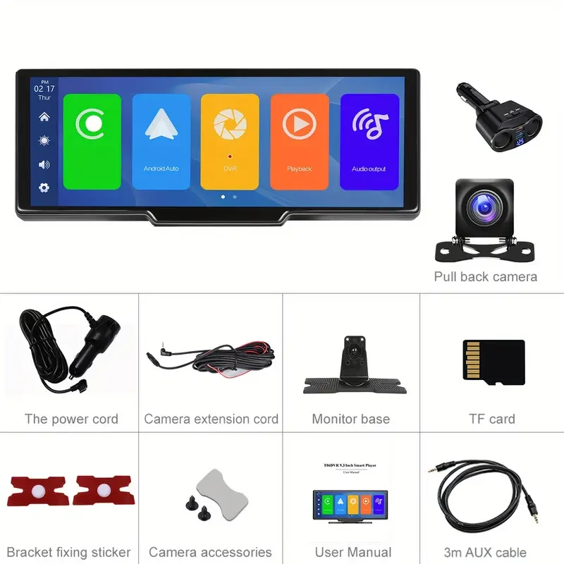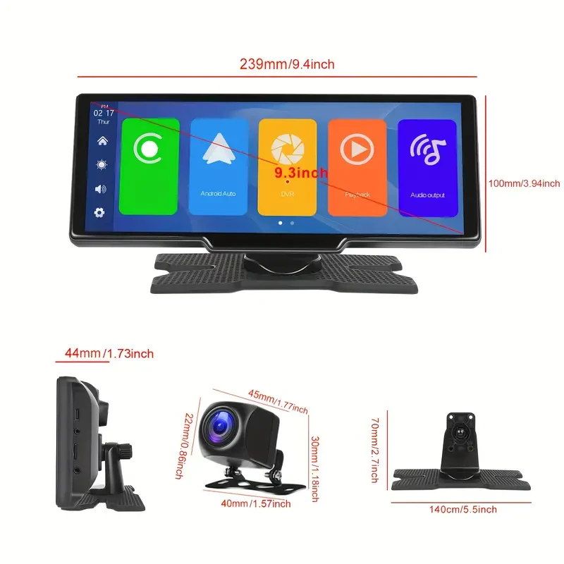 Portable Car Stereo Wireless Carplayer/Android Auto With 2.5K Dash Cam, 1080P, 9.3" HD Touch Screen Car Play Screen, GPS Navigation, Dual Wireless, FM/AUX, 64G TF Card + Backup Camera + Cigarette Ligh