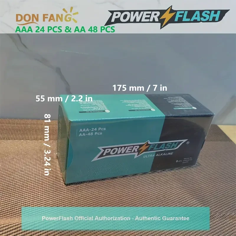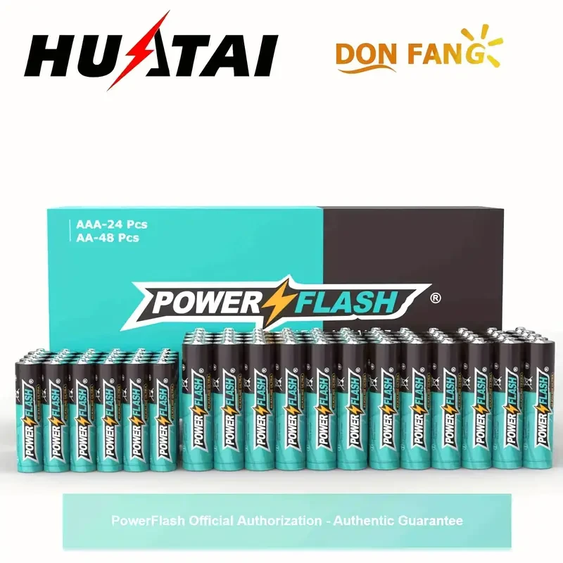 Ensure your devices are always powered with the PowerFlash Alkaline Long-Lasting Batteries Combo Pack. This set includes 24 AAA and 48 AA batteries, providing reliable and long-lasting energy for all your household and work needs.