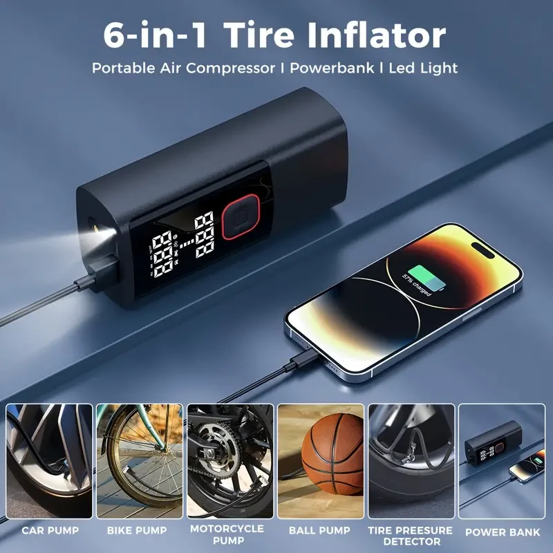 Tire Inflator Portable Air Compressor - KEEPUP 150 PSI Cordless Air Pump with 20000mAh Rechargeable Battery for Car Tires Ebike Motorcycles Bicycles Balls, Black