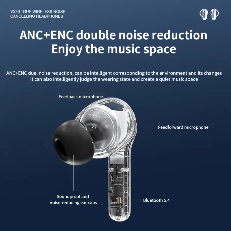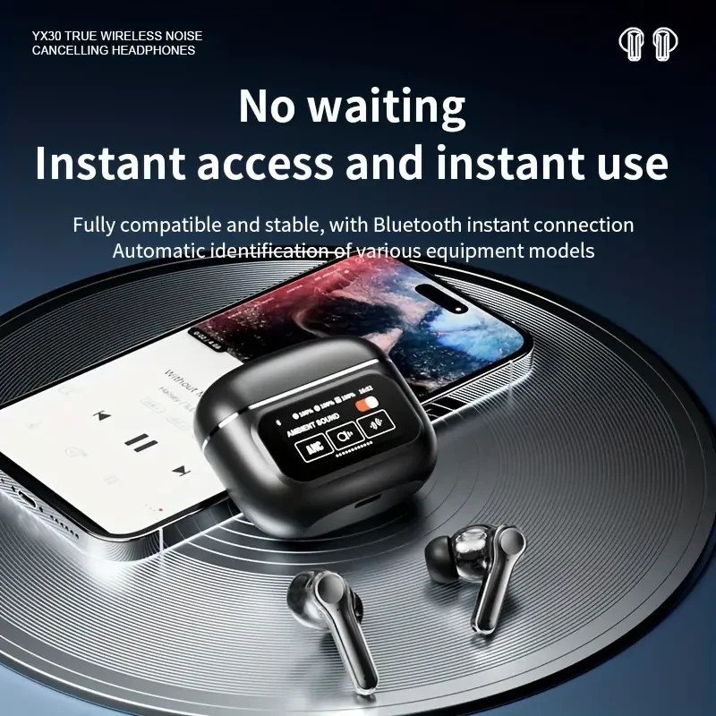 Touch Screen ANC Active Noise Cancellation Wireless Earphone TWS Earbuds Stereo Space Audio HIFI Headphone