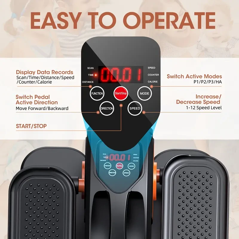 The Under Desk Elliptical Machine is a fully assembled, quiet, and portable electric seated pedal exerciser designed for seniors and office workers. It features 12 adjustable speeds and comes with a remote control for easy operation. This compact machine is perfect for low-impact exercise while sitting, helping to improve cardiovascular health and muscle tone.